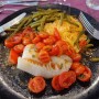 salade verte, gratin de pommes de terre, ramequin de Cancoillotte